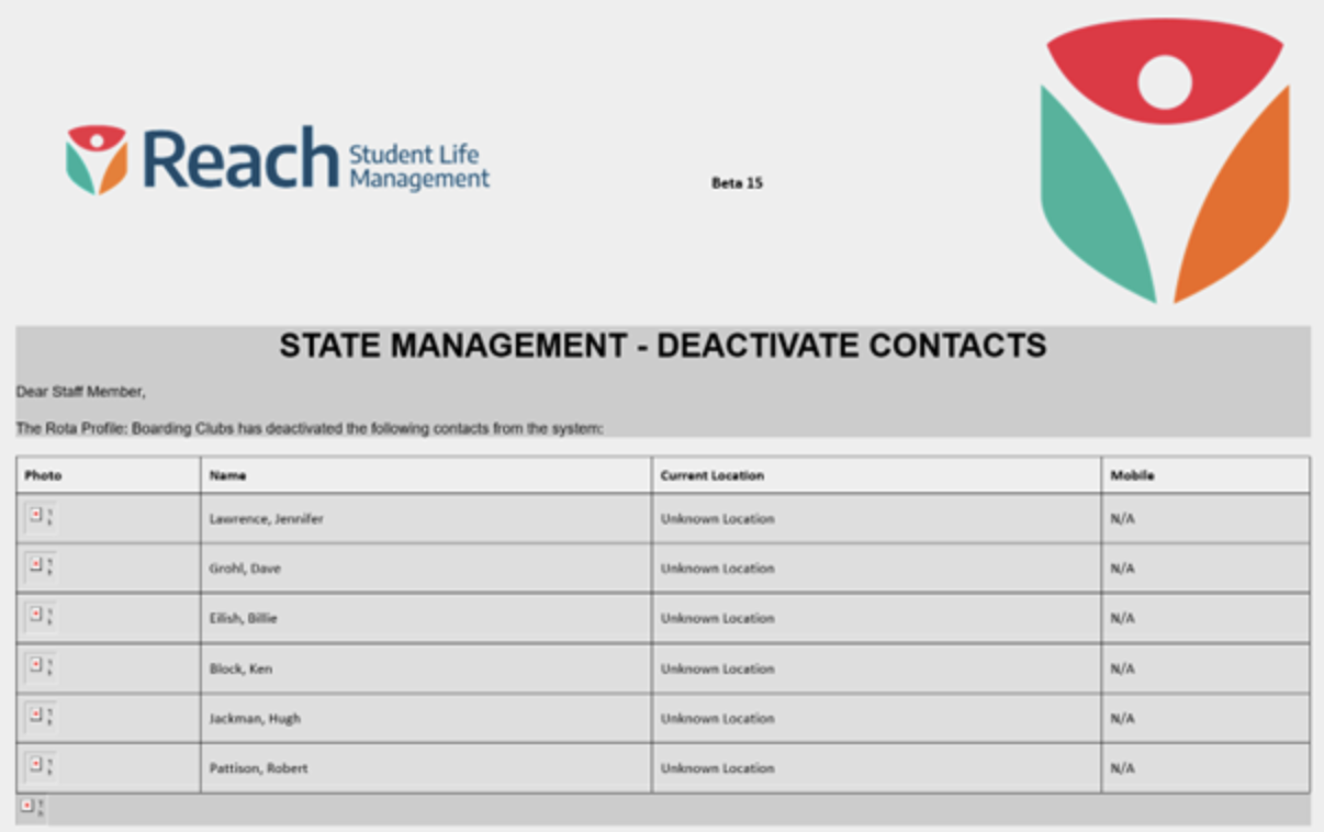 The email address will then get notification that the rota has deactivated any students that were active in a particular rota that has finished: