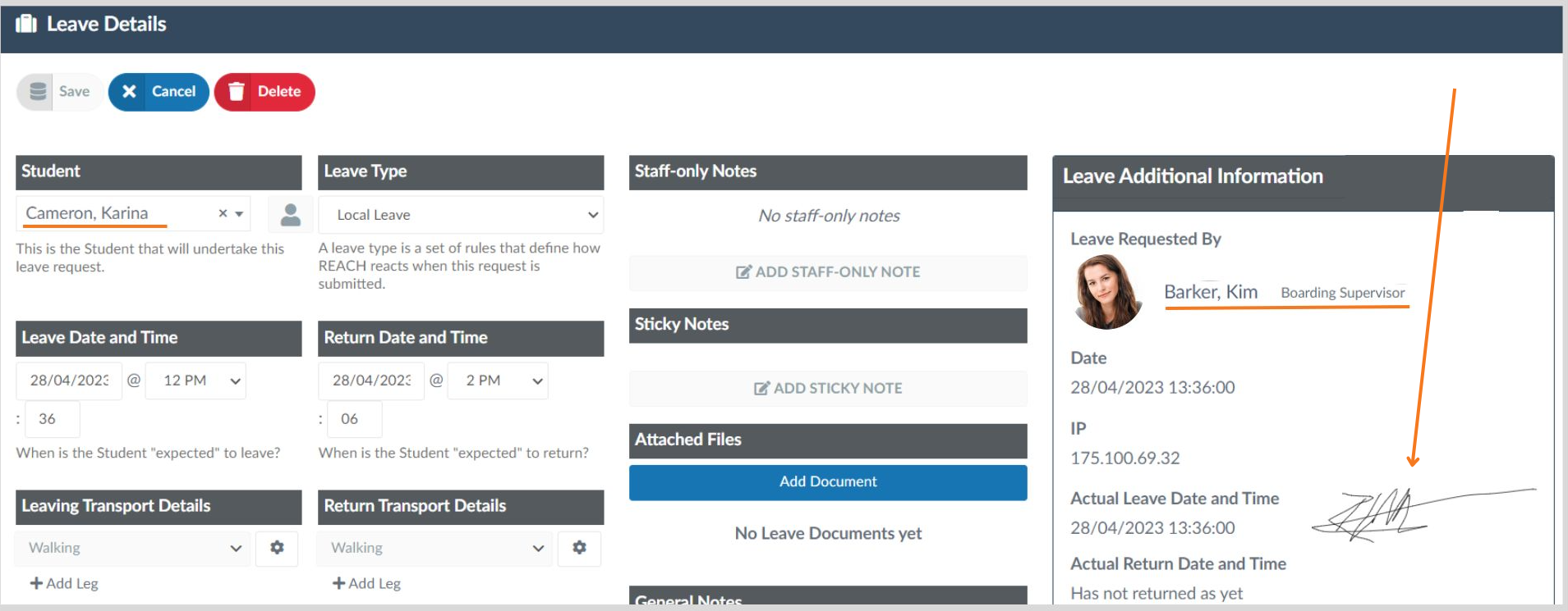 Authorising Signatures can be captured for departing and arriving students, if a signature is required from staff, parents or hosts.