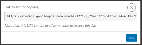 - Select the file that you have uploaded, select View Link to check that it is the right file and copy the URL for the file from your browser to your clipboard.