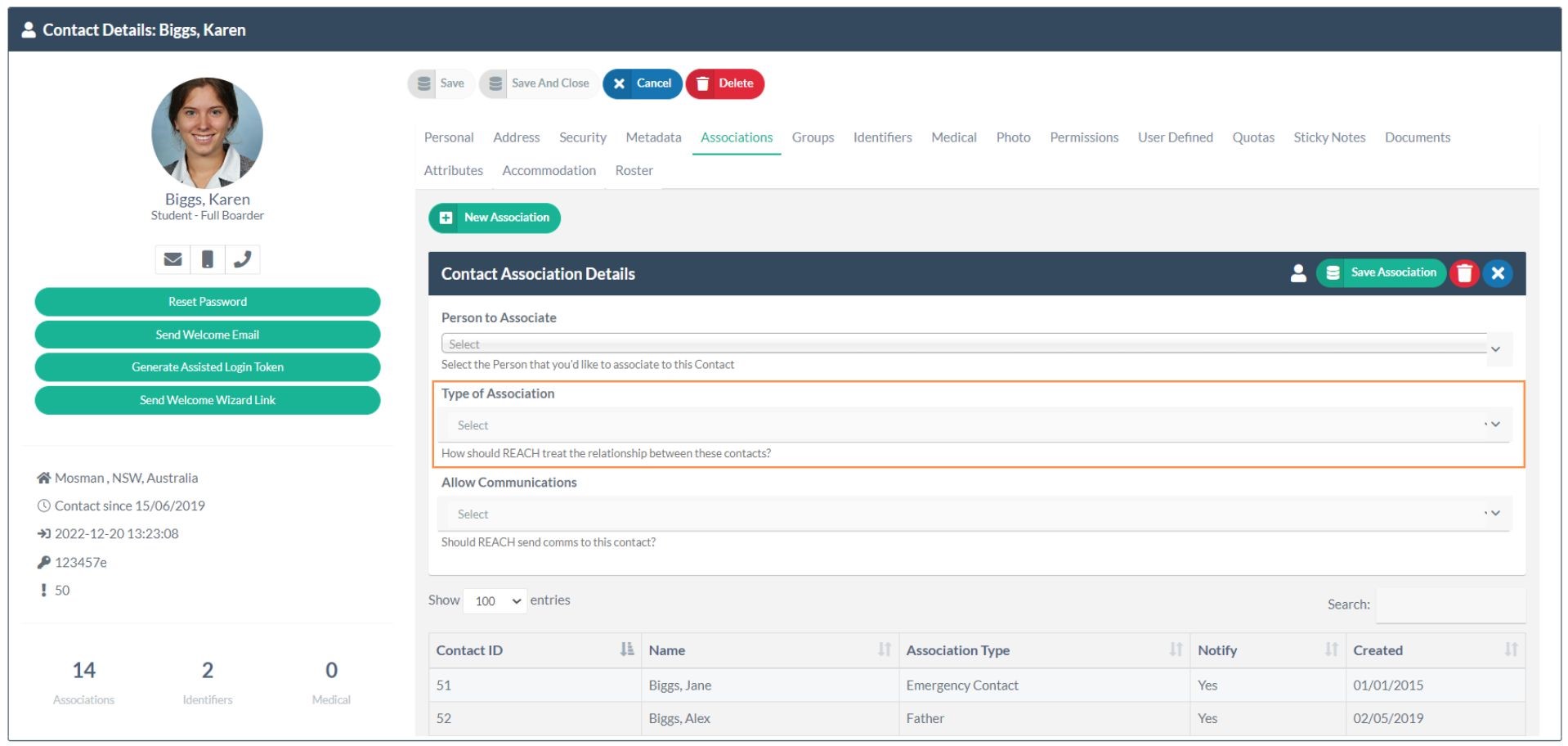 Associations play a critical role in the Reach system, as they determine with who students are permitted to go on leave with.