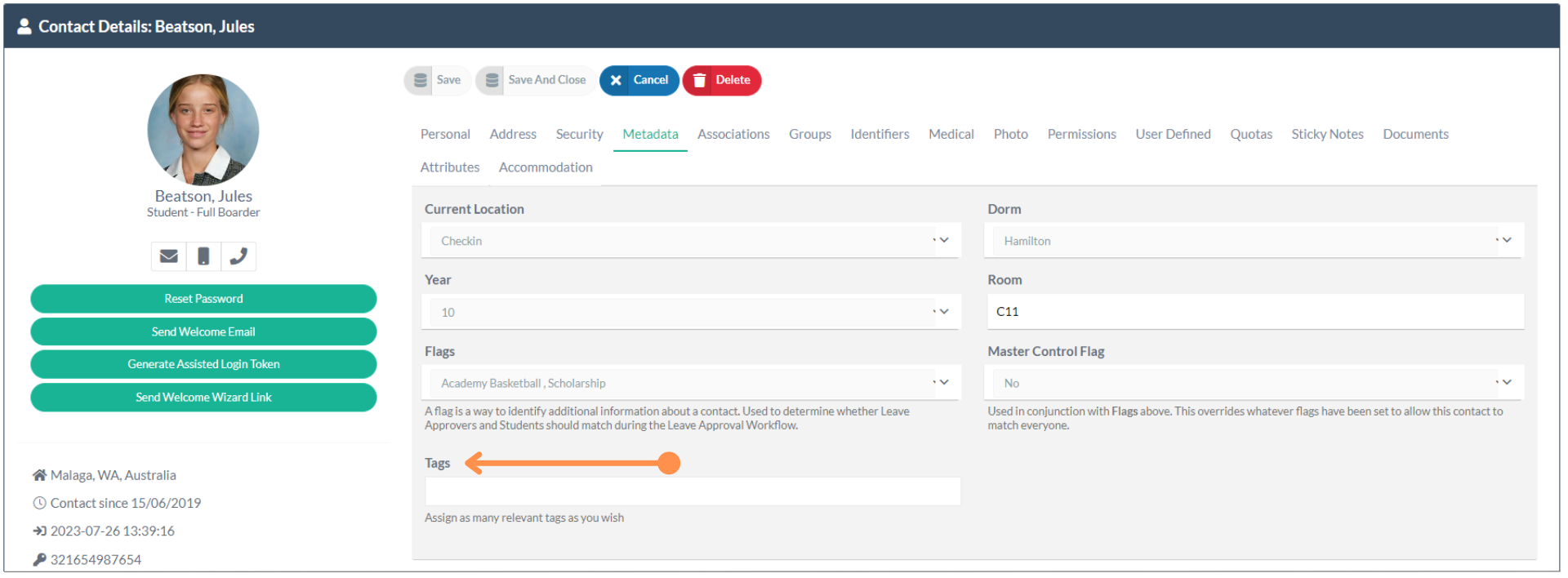 The Tags feature within Reach is designed for schools to create/use their own internal coding system. These Tags can be utilised in three different sections; Pastoral Reports, Contact Profiles, and Duty Reports.