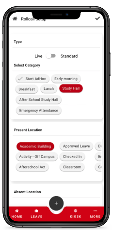 - Select an Absent Location - this will be the location students will be SISOd to upon being marked absent in the Live Rollcall