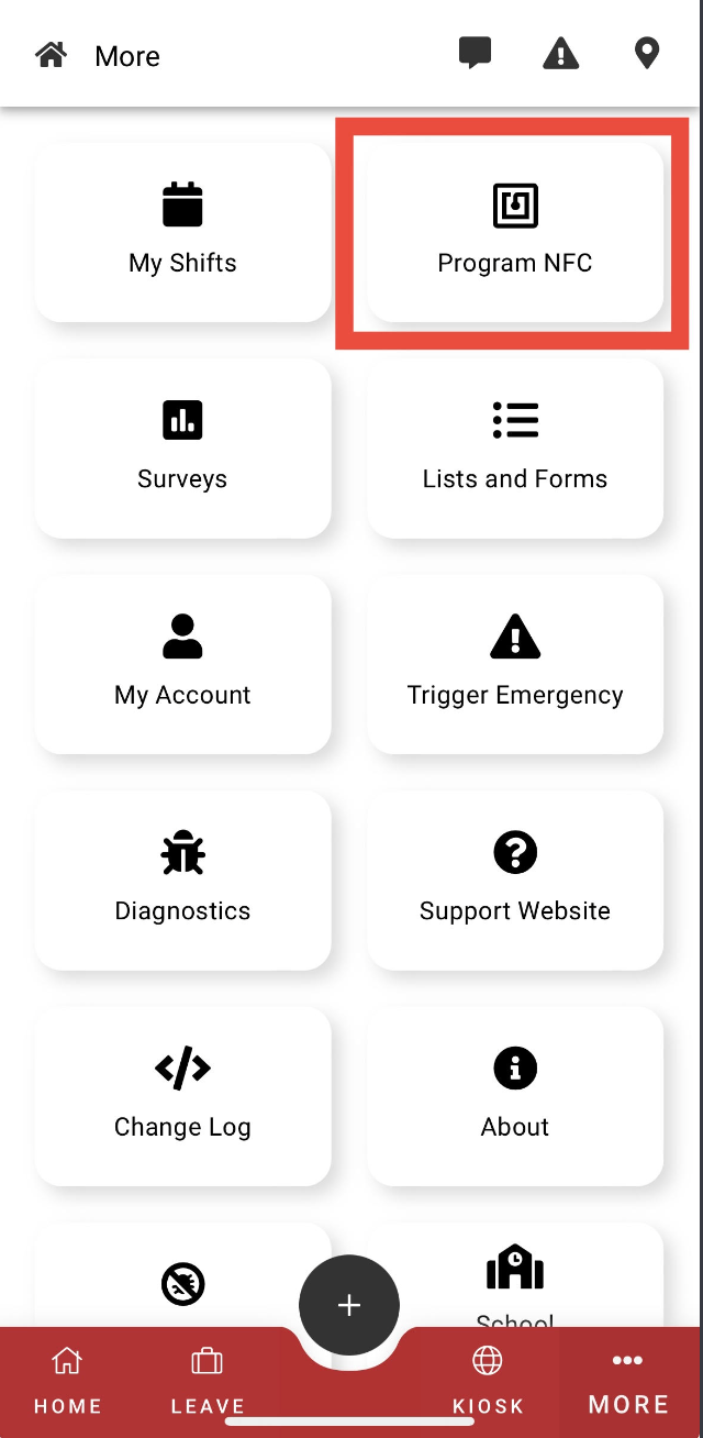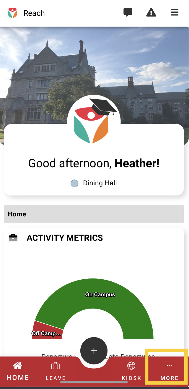 To program an NFC tag for use with a Live Rollcall, log into your Reach app and navigate to the "More" section.
