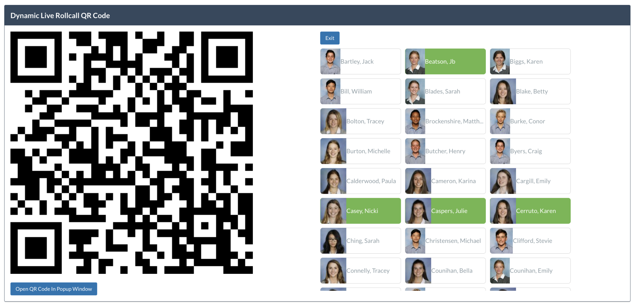 Managing a Live Rollcall with Dynamic QR
