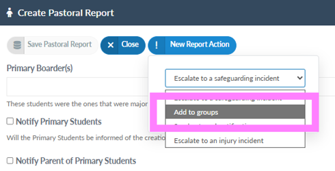 New Feature - Staff can action an existing Pastoral report to add a student to a group