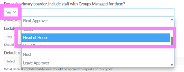 Select ‘Yes’ and then in the search box find the roles you want to limit notifications to based upon their groups managed (House and Year Group).