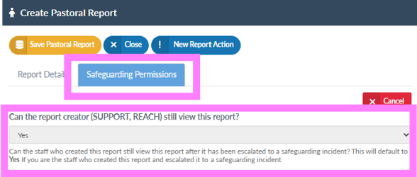Once saved the Pastoral Report then is escalated to a Safeguarding report and can only be viewed by staff with permission to View Safeguarding Reports.