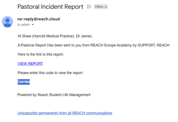 Where a pastoral report contains sensitive or confidential information this does not want to be sent as part of an email notification but you still need to inform the required members of staff that an incident has been recorded. A new feature is that you can configure Reach to remove the details of any Pastoral Report sent as a notification, this is a global setting and is configured in: